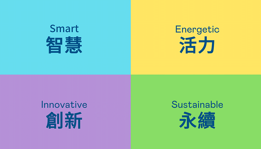 从稳重、信赖的尊龙时凯蓝开创新色彩,注入象征智慧蓝、活力黄、创新紫、永续绿的品牌色及动态多变的几何图形,呼应不设限的「Possibilities」精神,代表多元的专业技术及领域,在碰撞中相互触动、融合、延伸,持续激荡出更多新的可能性。